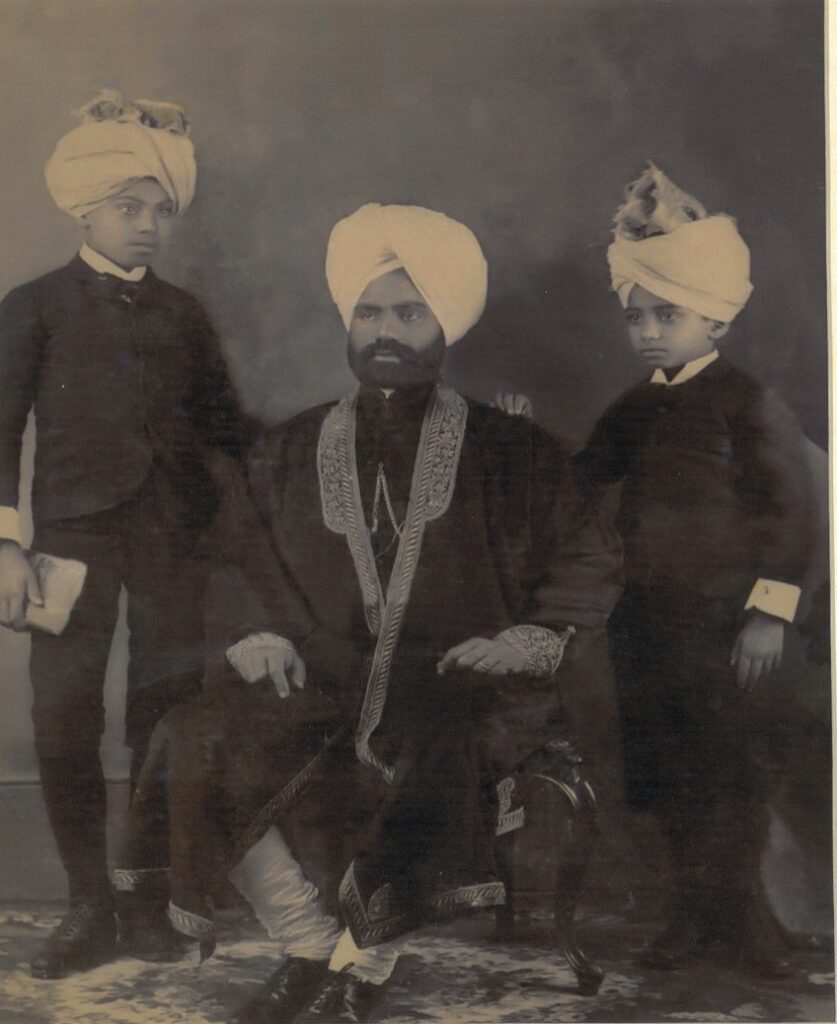 Syed Jamil Hussain (r) with his father, Mir Tafazzul Hussain (c) (then Chief Justice of Patiala) and his older brother, Mr Tajammul Hussain (l)