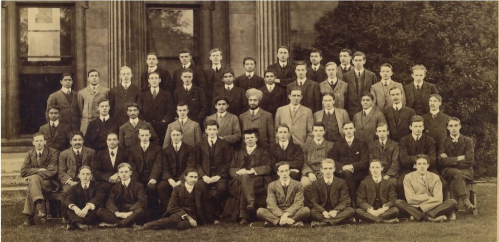 Freshman class, Downing College (1908). Mir Jamil Hussain is in the first seated row, second from the left