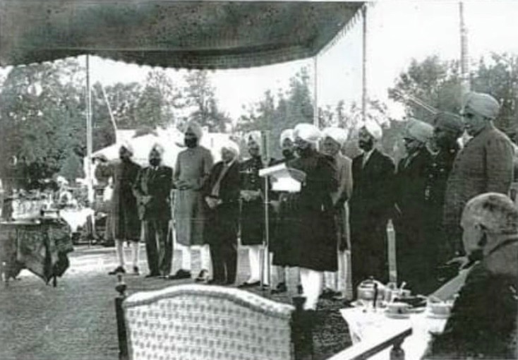 Jamil Hussain (standing, first from the right) at a function on Thursday, 30 November 1944, to welcome back the Maharajadhiraj of Patiala from World War II